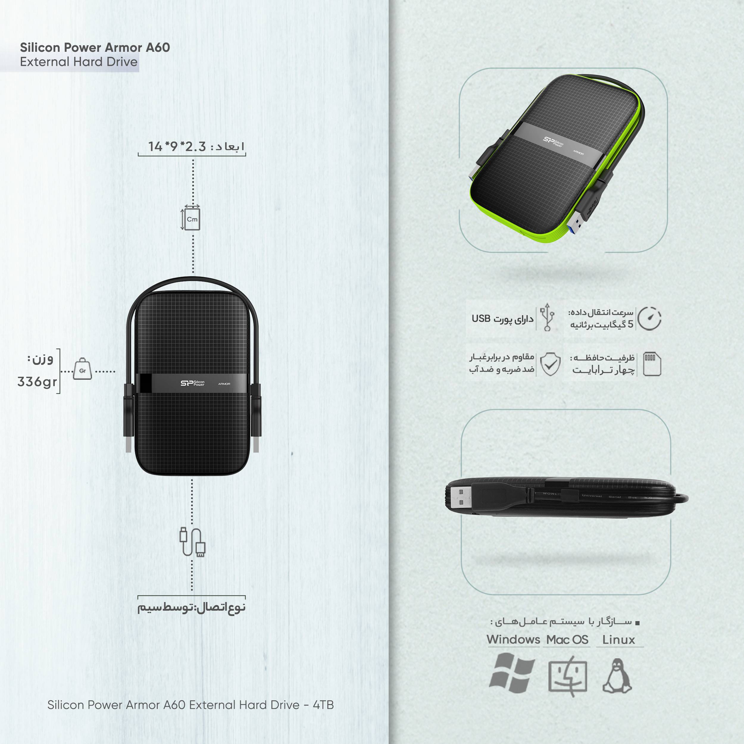 هارد اکسترنال سیلیکون پاور مدل Armor A60 ظرفیت ۴ ترابایت